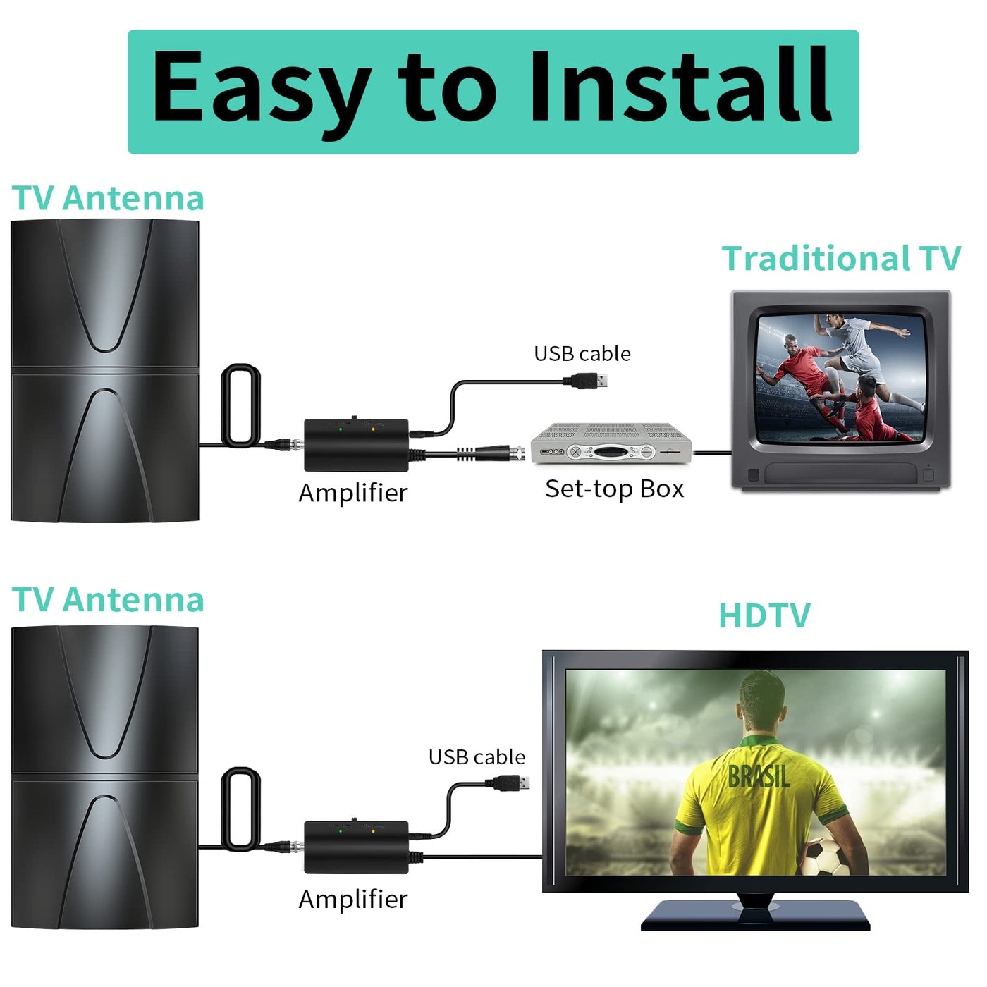 - High-Quality Thick Coaxial CableDigital HD Antenna comes with high performance coaxial cable, it's ade of high-quality copper wire, which is very thick to help receive the more stable signal. This durable construction eliminates signal interference, bring excellent signal reception. It can be used for all digital Ready devices, support 108op 4K All Old Smart Televisions