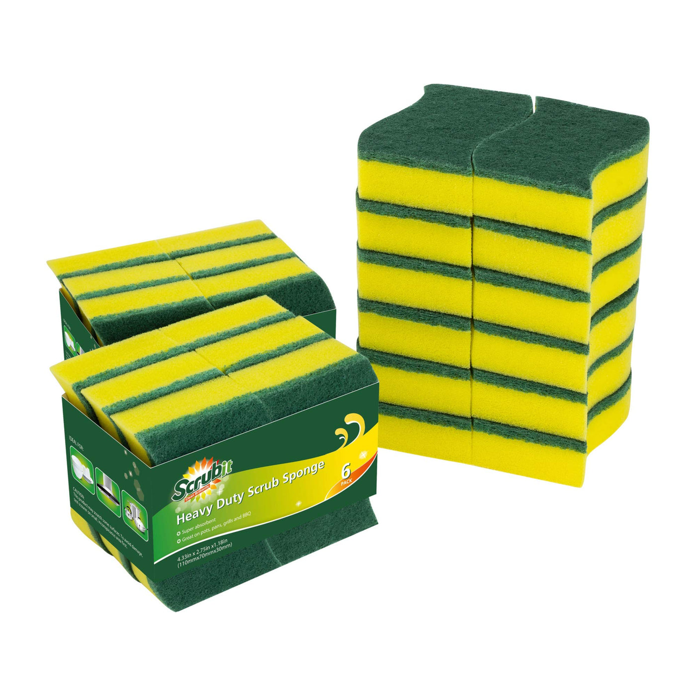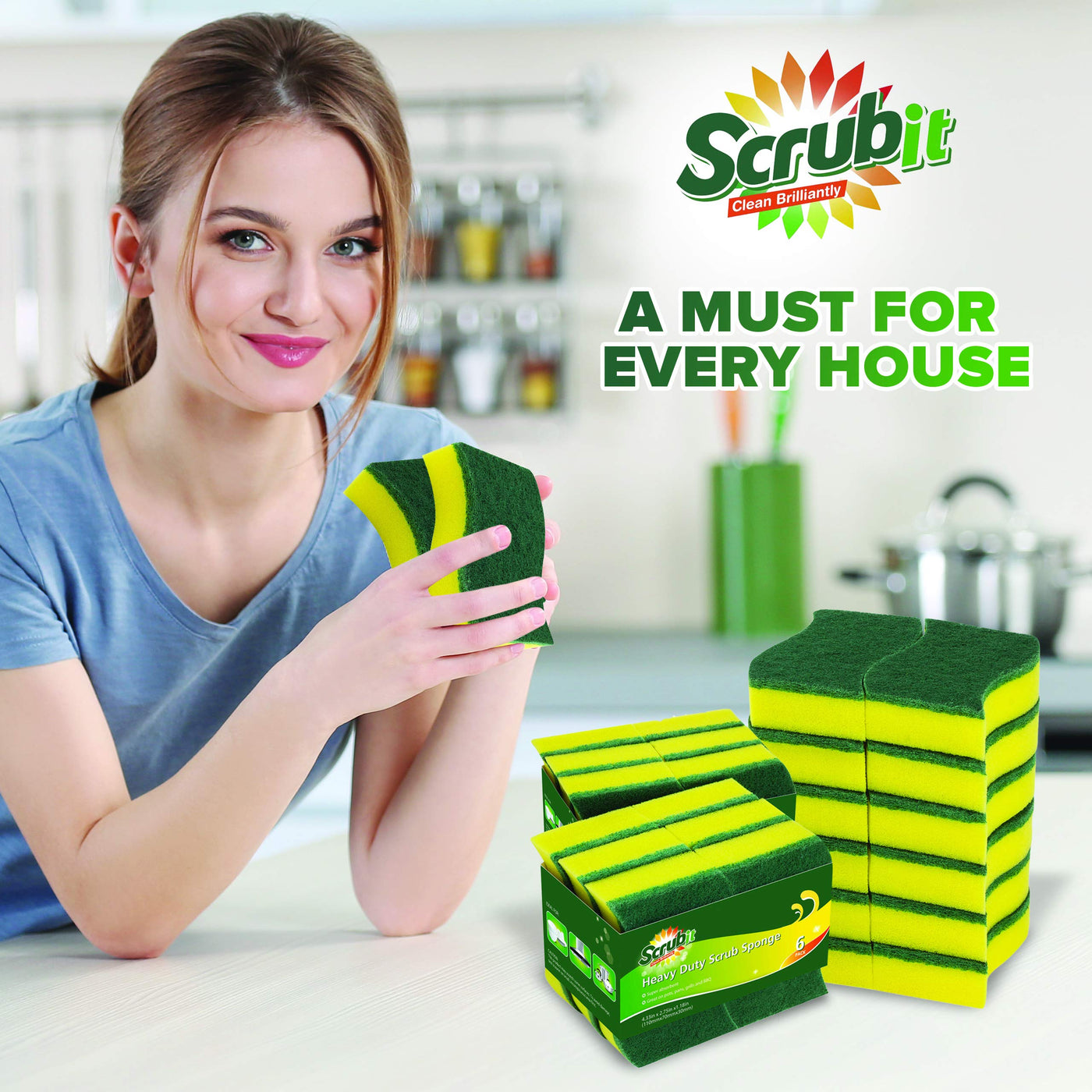 • EASY CLEANING 2 IN 1: No matter what you call it, this kitchen scrubber sponge, scrubby or even scrubbie has a dual purpose design to clean anything. Tough dirt on the bottom of your pots? Green scour side. Delicate glassware you dont want to scratch? Soft yellow side it is.
