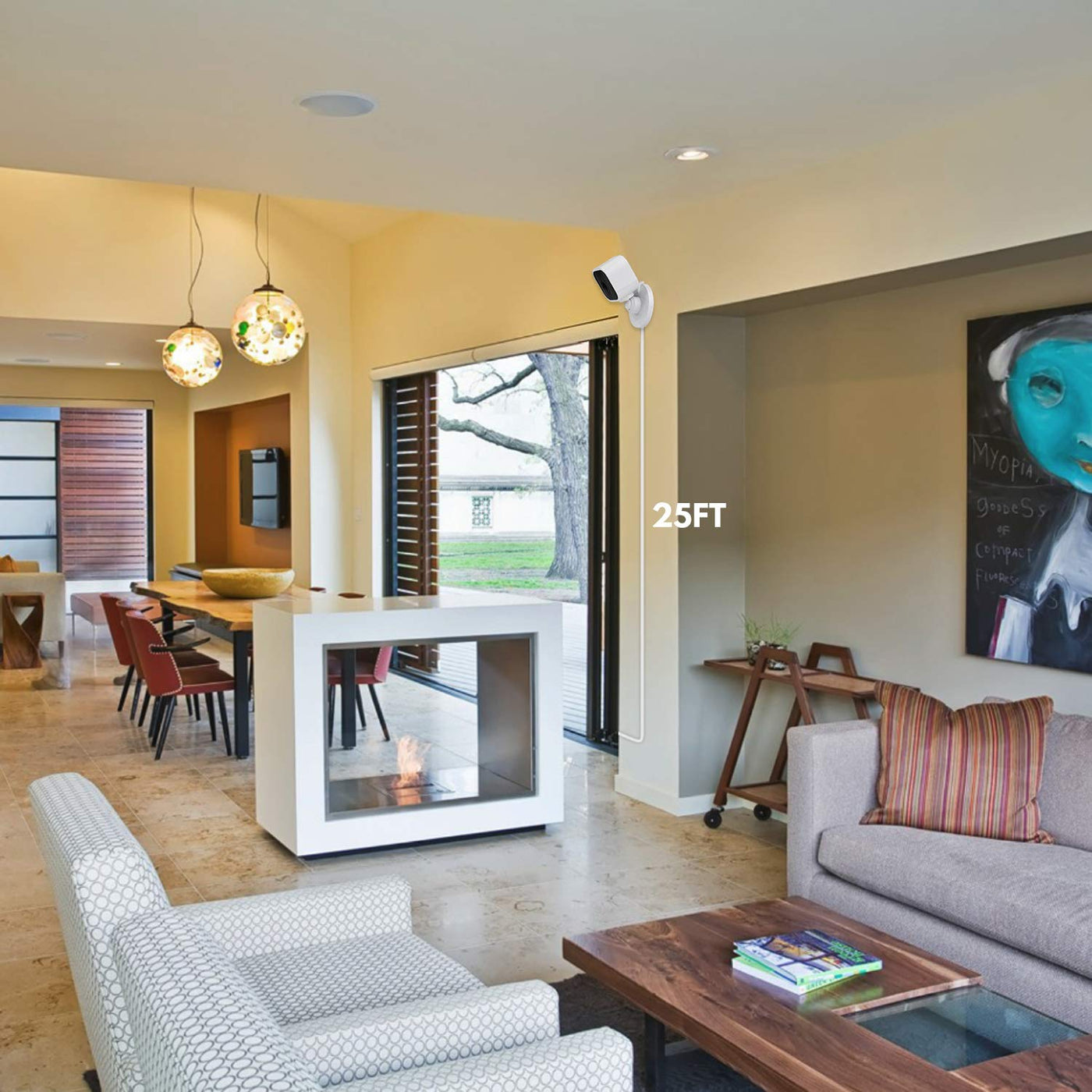 - Long Cable25ft/7.5m extension power cable makes it possible to position your blink mini camera inside or outside your house without worrying the distance.