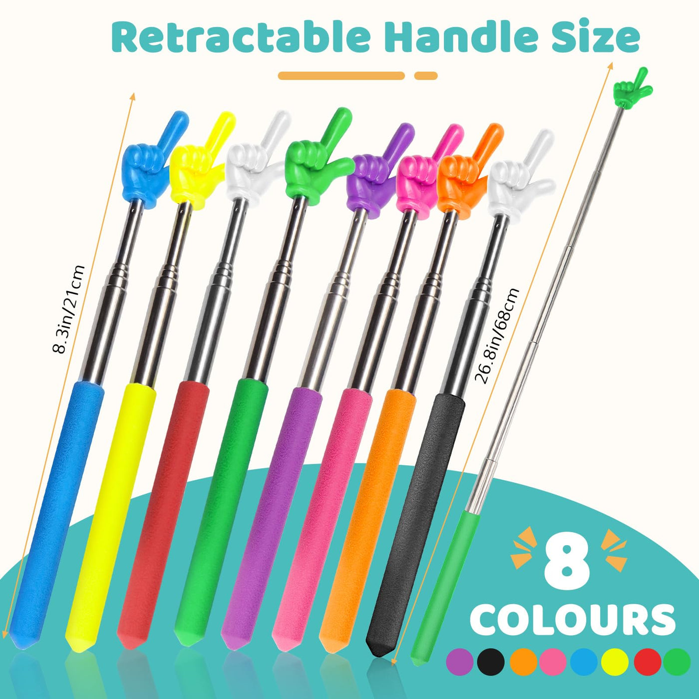 8 Pcs Teacher Pointer Stick for Classroom Extendable Pointer Finger Telescoping Hand Pointer Retractable Pointing Stick Reading Aid for Presentation Whiteboard (8 Colors) 8 Colors