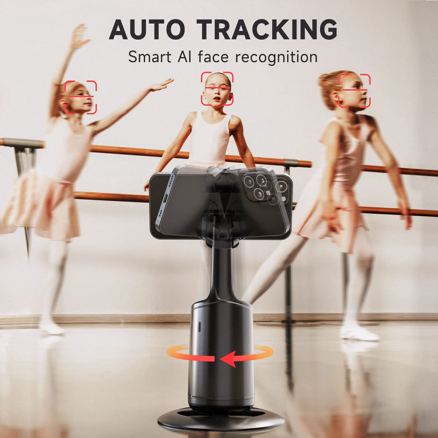 Auto Face Tracking Tripod - 360° Rotation Auto Tracking Phone Holder, No App, Phone Camera Mount with Remote and Gesture Control, Rechargeable Smart Shooting Holder for Video Recording, Tiktok