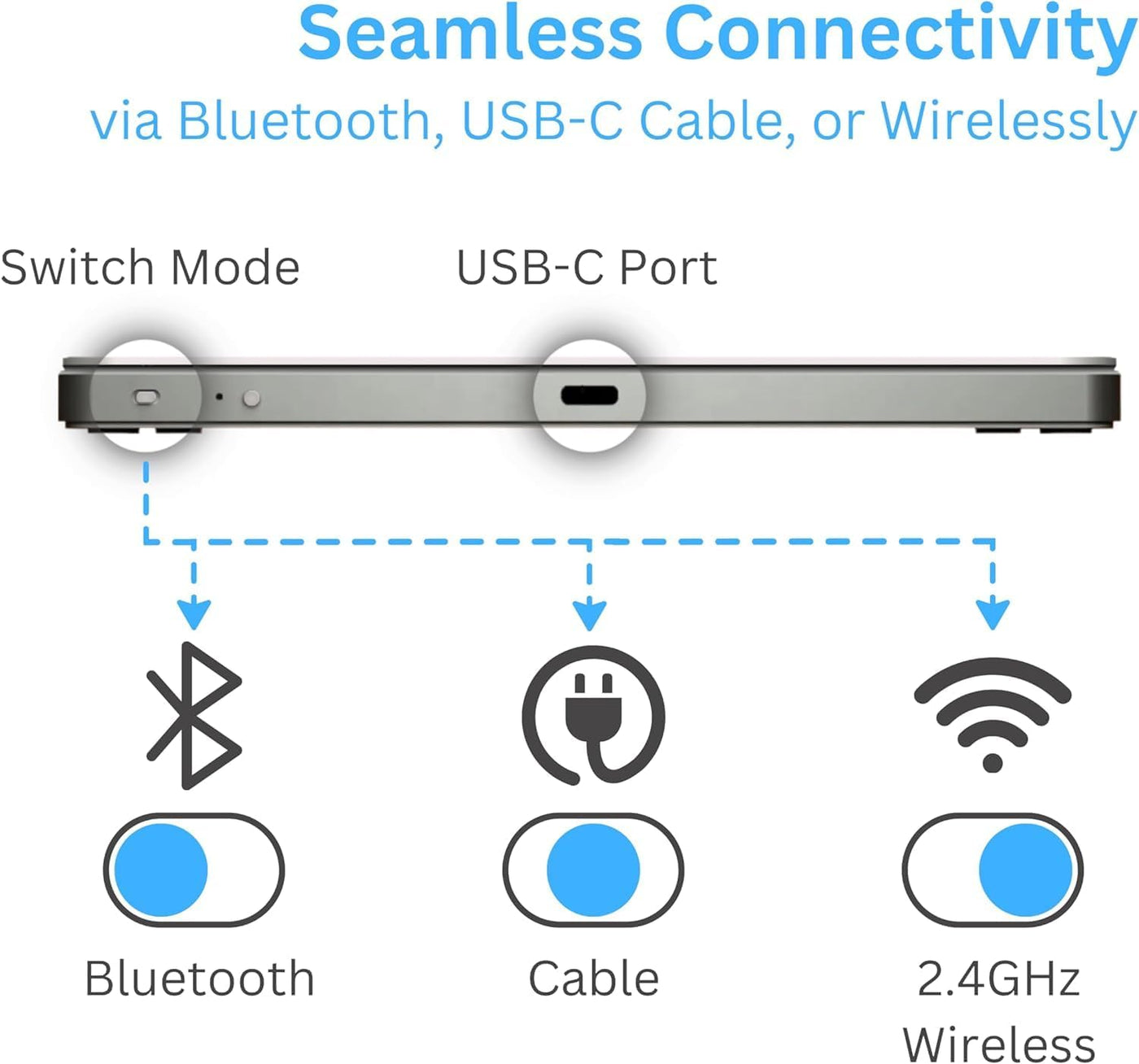 - 4: link methods 1: Cable (need to delete the Bluetooth usage record.) 2: Bluetooth(MacOs cannot use Bluetooth mode for gesture control) 3:2.4G receiver(need to delete the Bluetooth usage record.)