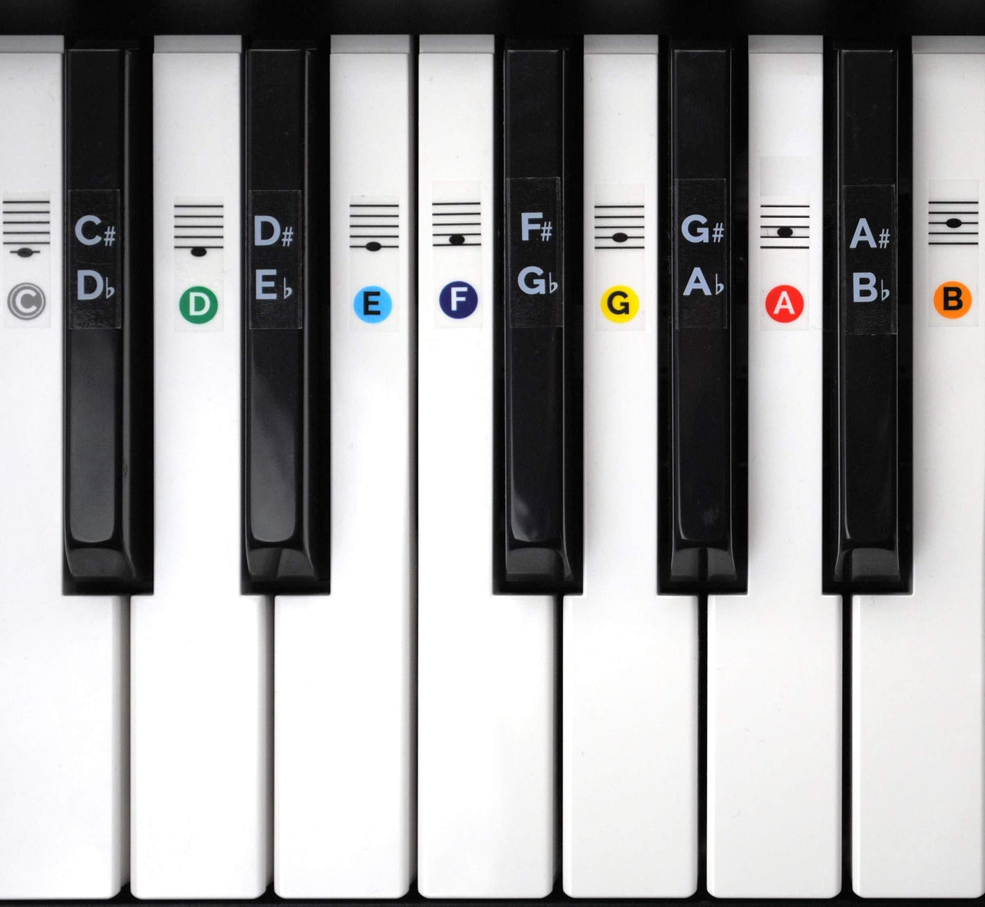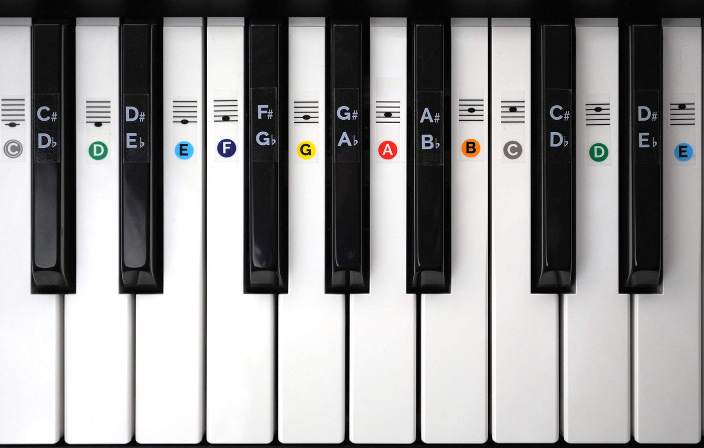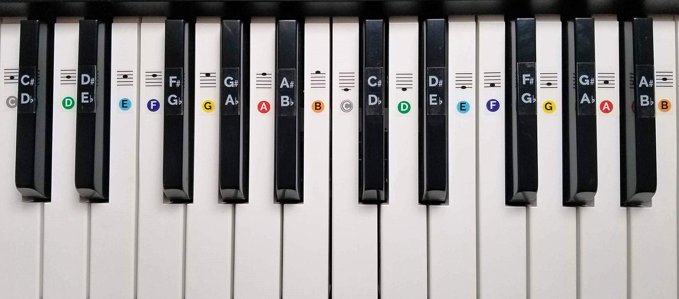 Color Piano Keyboard Stickers for 49 / 61 / 76 / 88 Keys- These are simply the best keyboard stickers on the market! We spent hours researching what people like and don't like about piano keyboard stickers... and custom designed these to contain everything you need! Many other stickers out there only cover the middle 4 octaves... then the rest are blank! These stickers show you note positions for all keys. keyboard stickers, piano stickers, 88 key keyboard, 88 key piano keyboard, 88 key piano, learn to play piano, keyboard piano stickers, keyboard piano 88 keys, piano stickers for keys, piano key stickers, piano key stickers removable, teach yourself piano, 76 key keyboard, piano keyboard 61 keys, piano keyboard 88, piano lessons for beginners, keyboard labels, learning piano, learn to play keyboard, 88 keyboard, key stickers, learn piano, piano stickers for 88 keys, piano stickers for kids, electronic keyboard 88 keys, piano beginner, keyboard key stickers, electronic piano keyboard 88 key, full size keyboard piano, music keyboard stickers, stickers for piano keyboard, 61 key piano, learn the piano, piano key guide, piano key labels, piano note chart, piano note stickers, piano notes, electronic keyboard 61 keys, keyboard note stickers, keyboard notes, piano practice keyboard, key-e61 key piano keyboard, learn keyboard, pianos keyboards, musical keyboard stickers, learning to play keyboard, learning to play piano, learning keyboard