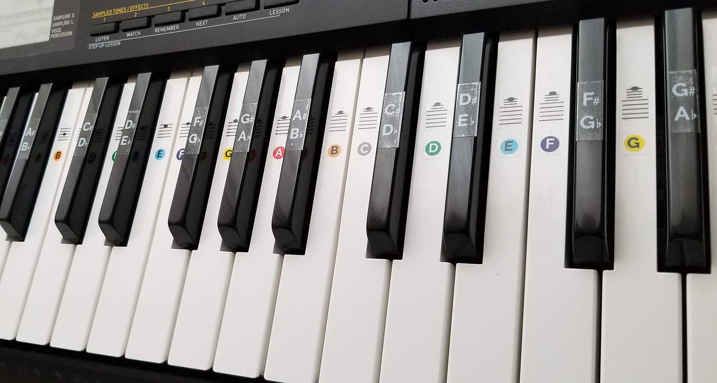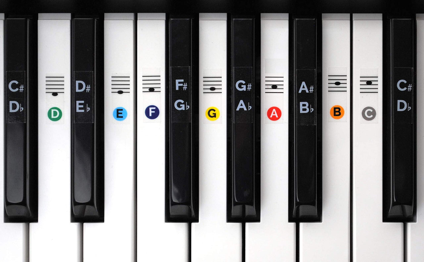 - INCLUDES 88 STICKERS- Laminated, durable vinyl piano stickers for white AND black keys! Stickers will stay in place and colors won't rub off during use.