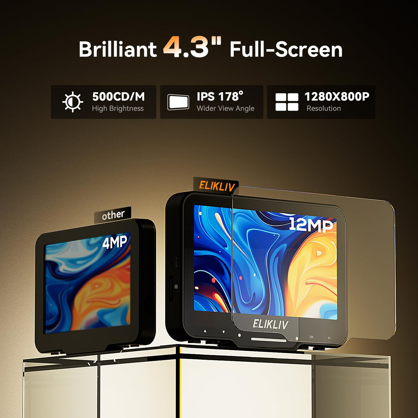 - 4.3'' Full HD Display: Enjoy even greater clarity with our upgraded 1080P Full HD LCD screen, delivering sharp, true-to-life images and videos; Paired with 8 adjustable LED fill lights, this enhanced display ensures every detail is vividly illuminated