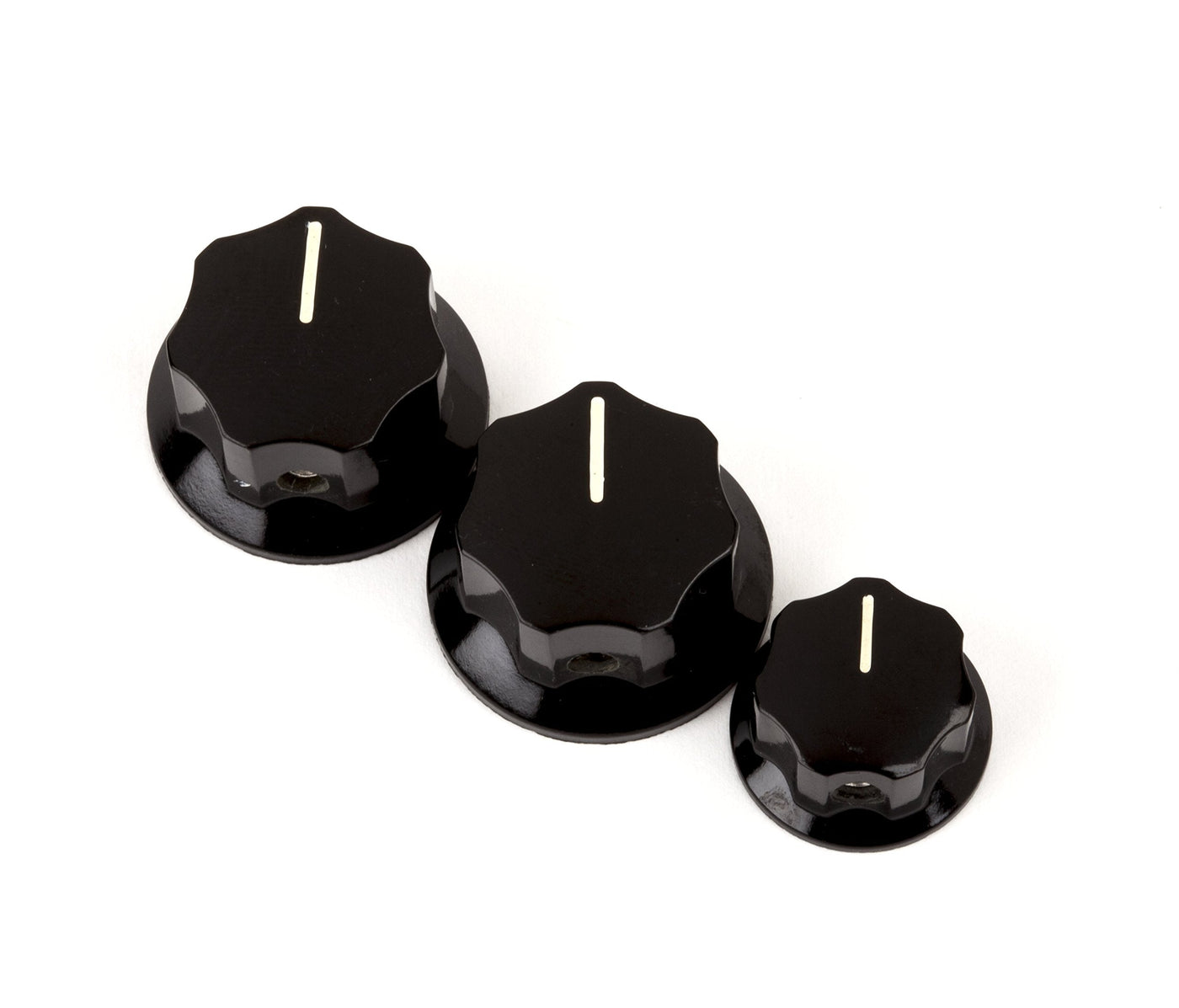 - Set of 3 (Volume, Volume, Tone) black knobs with set screws and white indicator lines