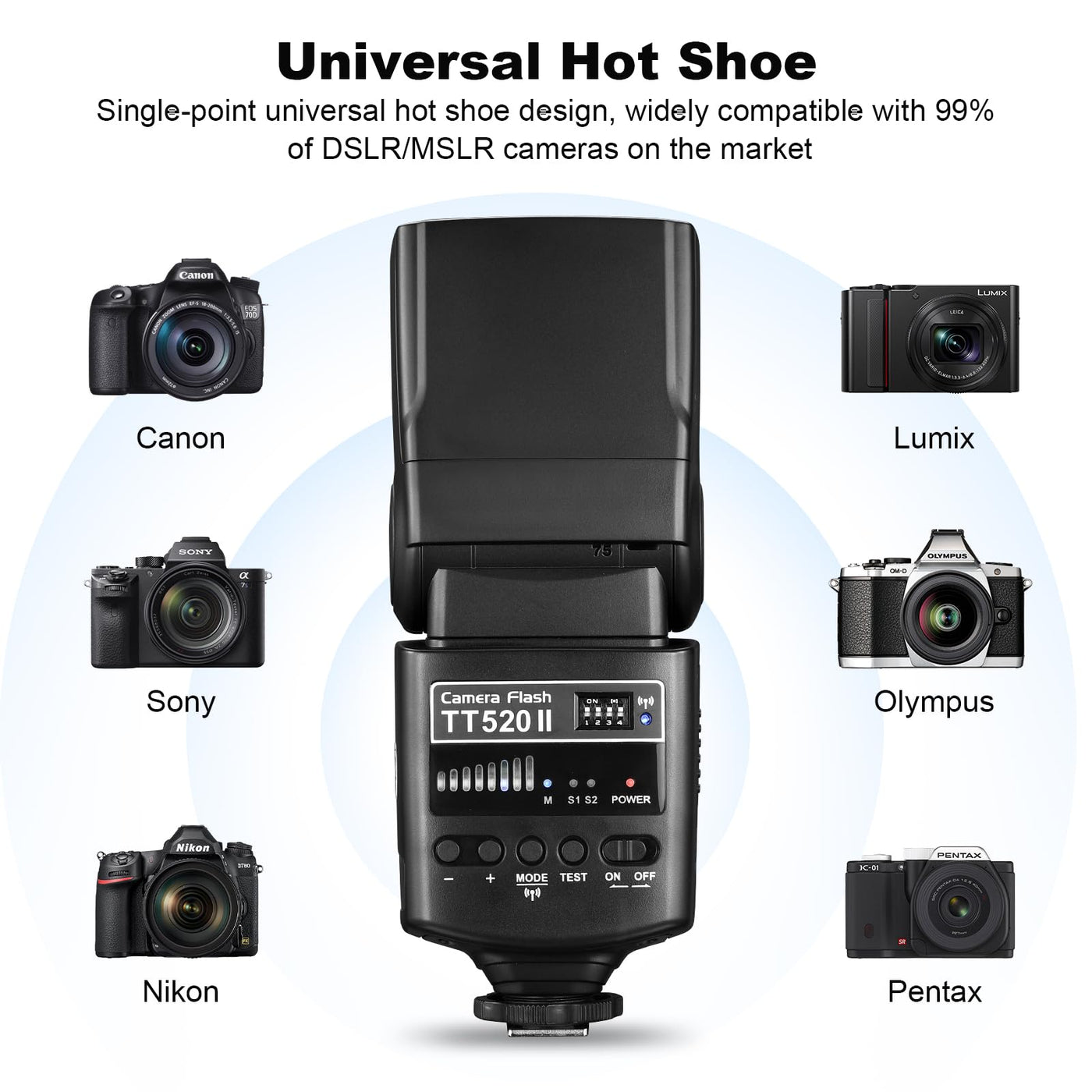 - Suitable for DSLR Camera with standard hot shoe, nice replacement for Nikon, Canon, Pentax, Olympus, and so on.