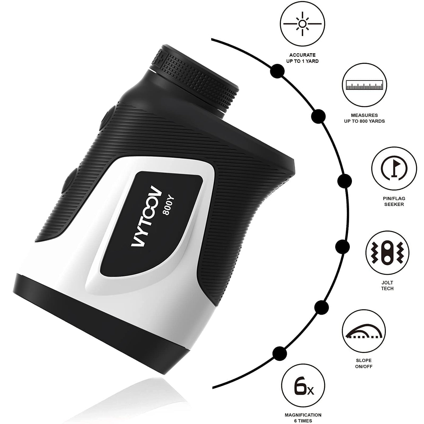 VYTOOV Golf Rangefinders Features: Clear View : 6x magnification,HD LCD display. Accuracy: ± 1 yard ,3-800 Yds. Slope Tech. Flag-lock & Vibration:When locking the flag golf range finder will vibrate. Pinsensor & Flag-lock: Flag- Lock 250+Yds. Battery: 3.7V 750mAh rechargeable (Type C Charging) Battery Last: Single Measuring 20000 times after full charged. Battery Life: Rechargeable 500+ times Battery Working Life: Single measuring 20000 times after fully charged This Golf Rangefinders with 4 Modes: Mode 1: TOURNAMENT Legal& Continuous Scan Mode 2: Slope Feature+Vibration (Long press) Mode 3: Horizontal Distance +Vertical Distance Mode 4: Speed modePlease Notes: 1: Please adjust the eyepiece to make sure the target clear. 2: Please make sure the target is within 5 to 800 yards and 5-300+ yards to a flag lock. 3: Please ping the flag, not try to ping the stick. 4: This golf rangefinders is a laser product class 1,do not stare into the laser beam,never aim at sun. 5: Do not choose the transparent measuring surface, such as transparent glass, water surface, and so on. 6: Please ensure that the surrounding weather environment is good. not in rainy weather, due to excessive water vapor in the air, the laser beam will be shifted and the target cannot be locked. Our support team is always willing and able to help. 24-hour mail reply service .If any questions, please contact with service team.