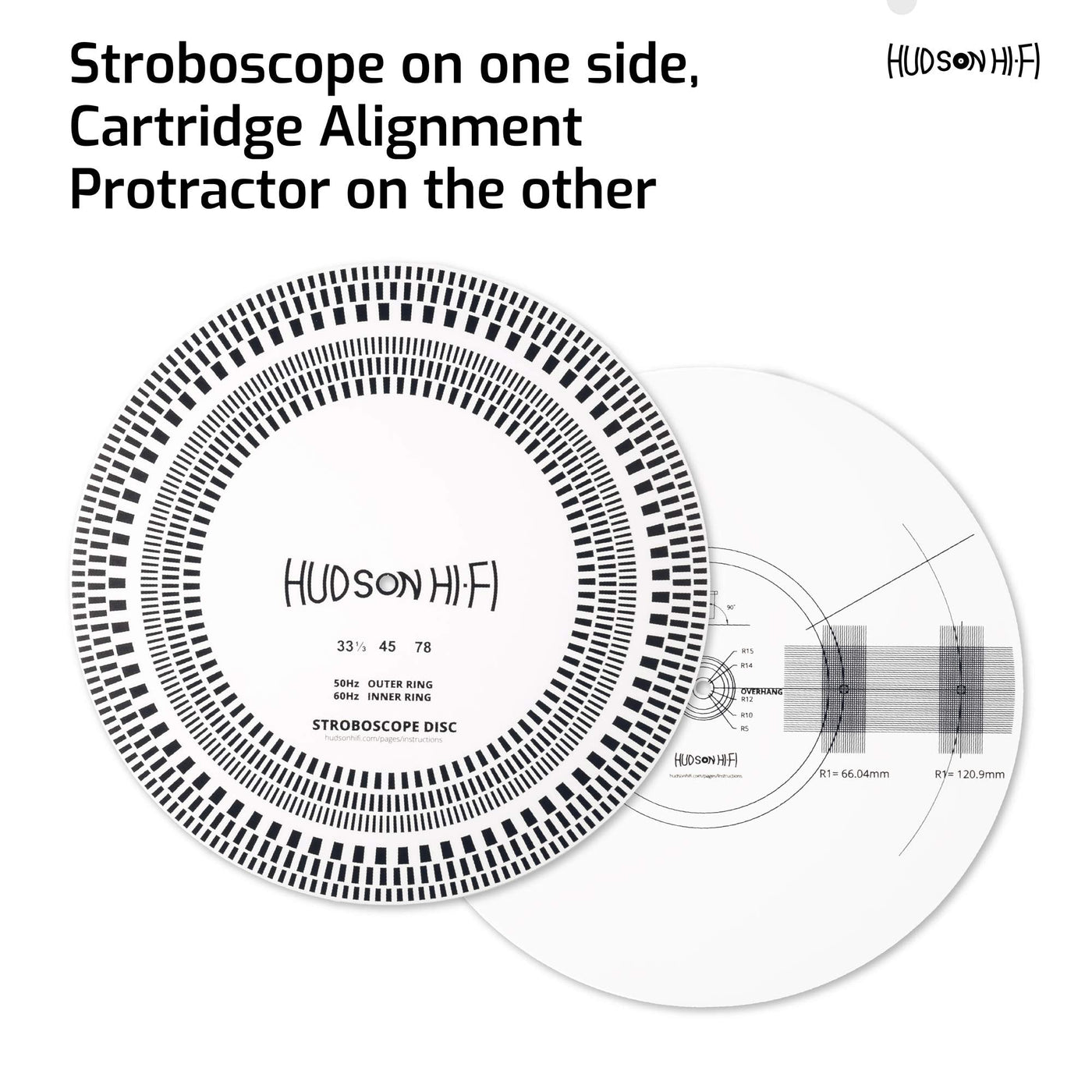 Hudson Hi-Fi Turntable Double Sided Cartridge Alignment Protractor Mat includes Stroboscope Side Protractor – Strobe