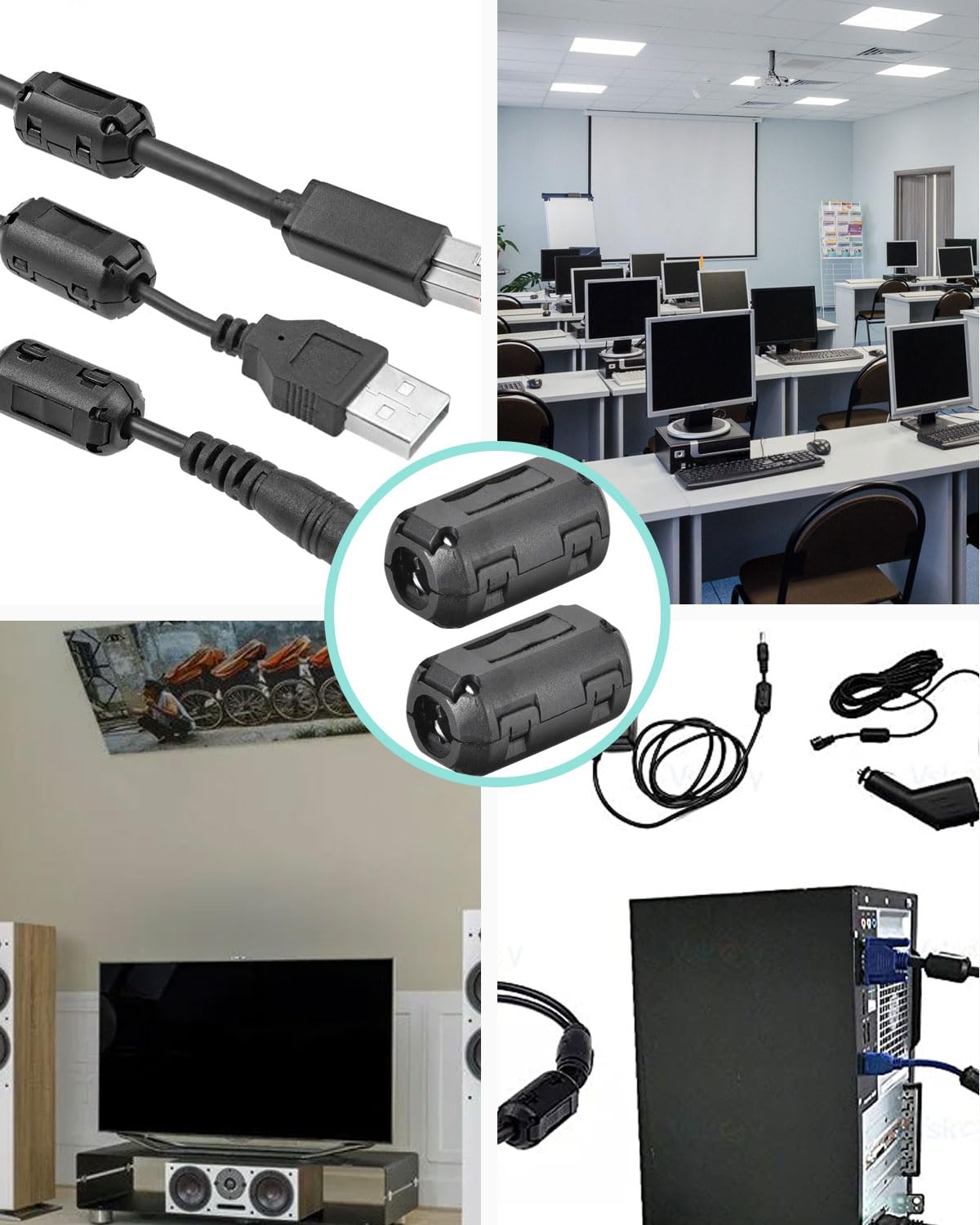 - The clip-on ferrite ring core can be clipped to power cord, USB cable, mouse cable, keyboard cable, headphone cable, video cable, audio cable and data cable.