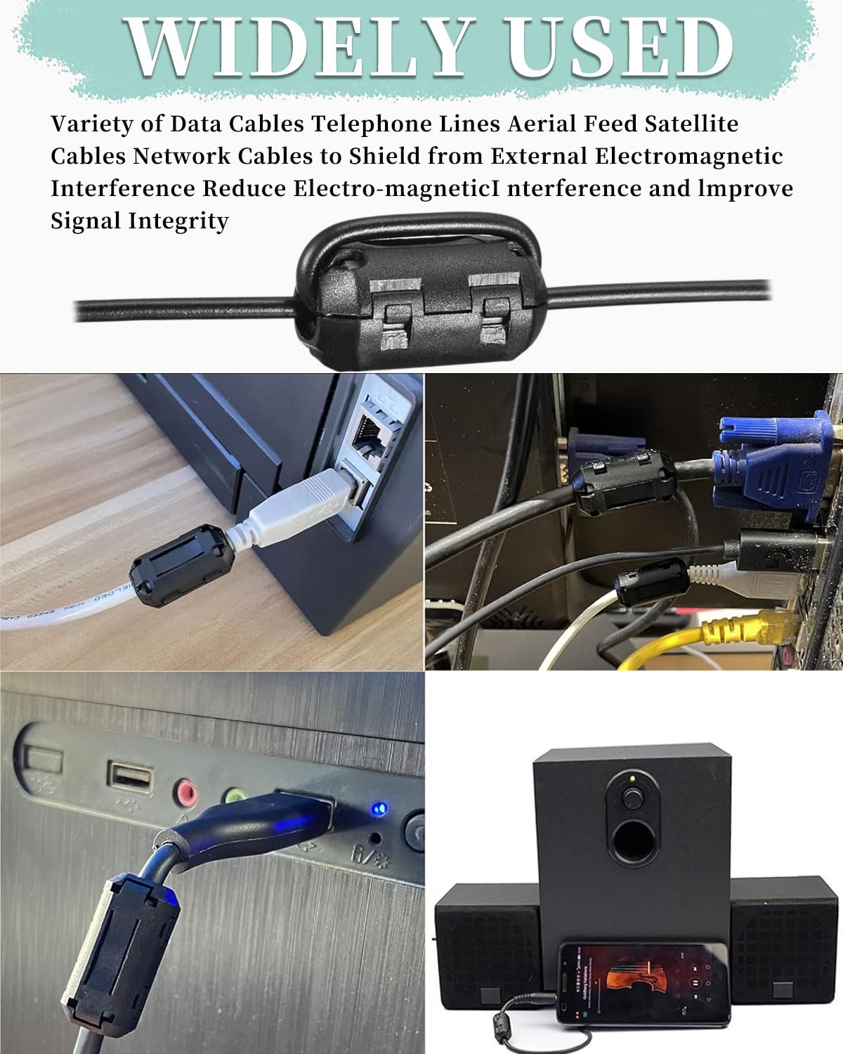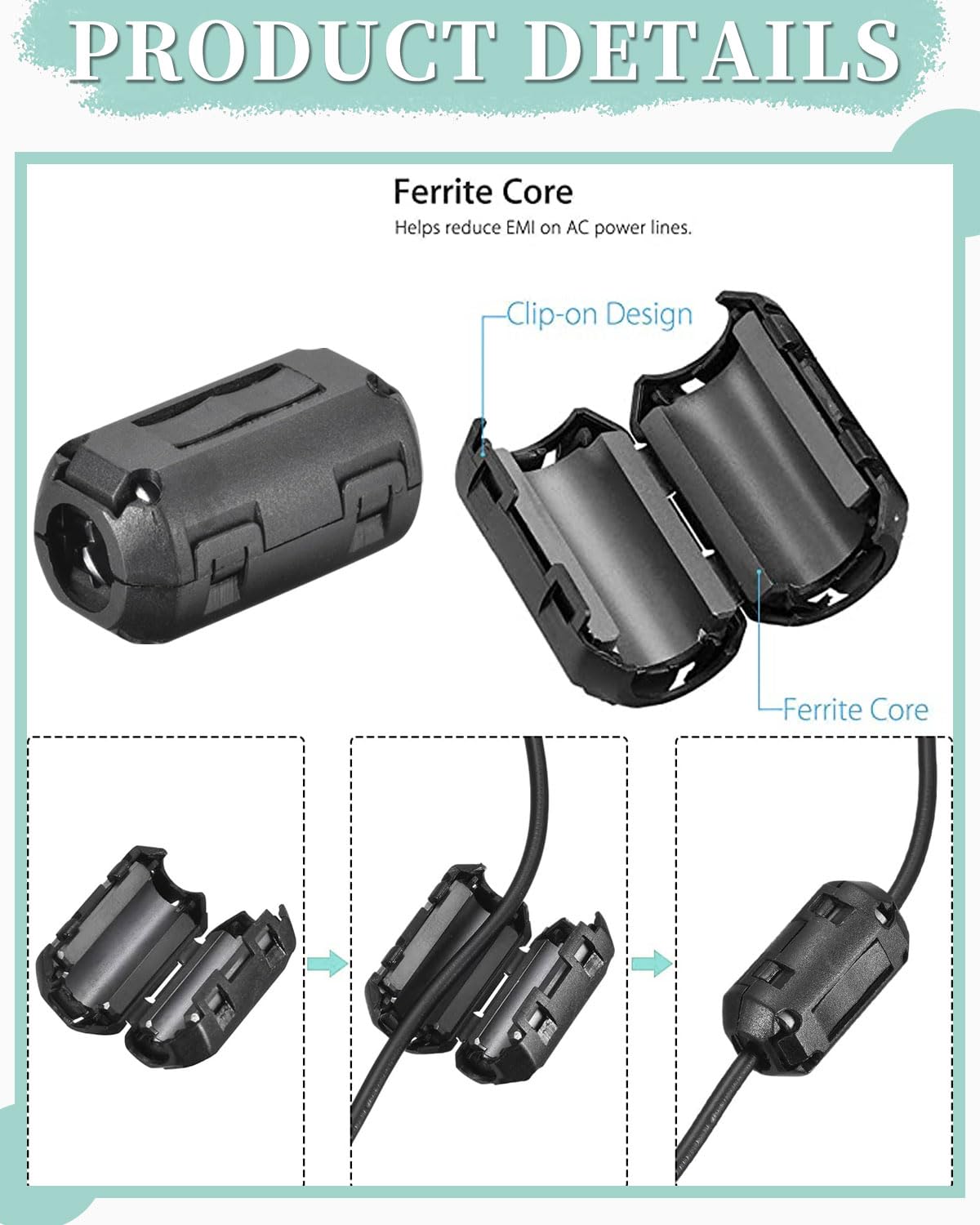 - Clip-on ferrite ring cores effectively shield EMI and RFI interference and improve signal integrity. Please install them near interference sources.