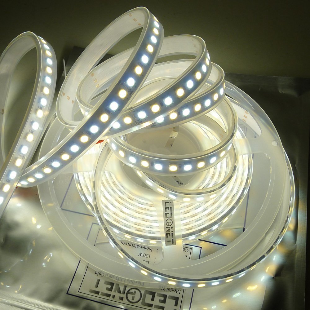- Color temperature: 2800K -7000K adjustable. LED Quantity: 120LEDs/m, 600LEDs/roll(300pcs warm white LED and 300pcs daylight white LED).