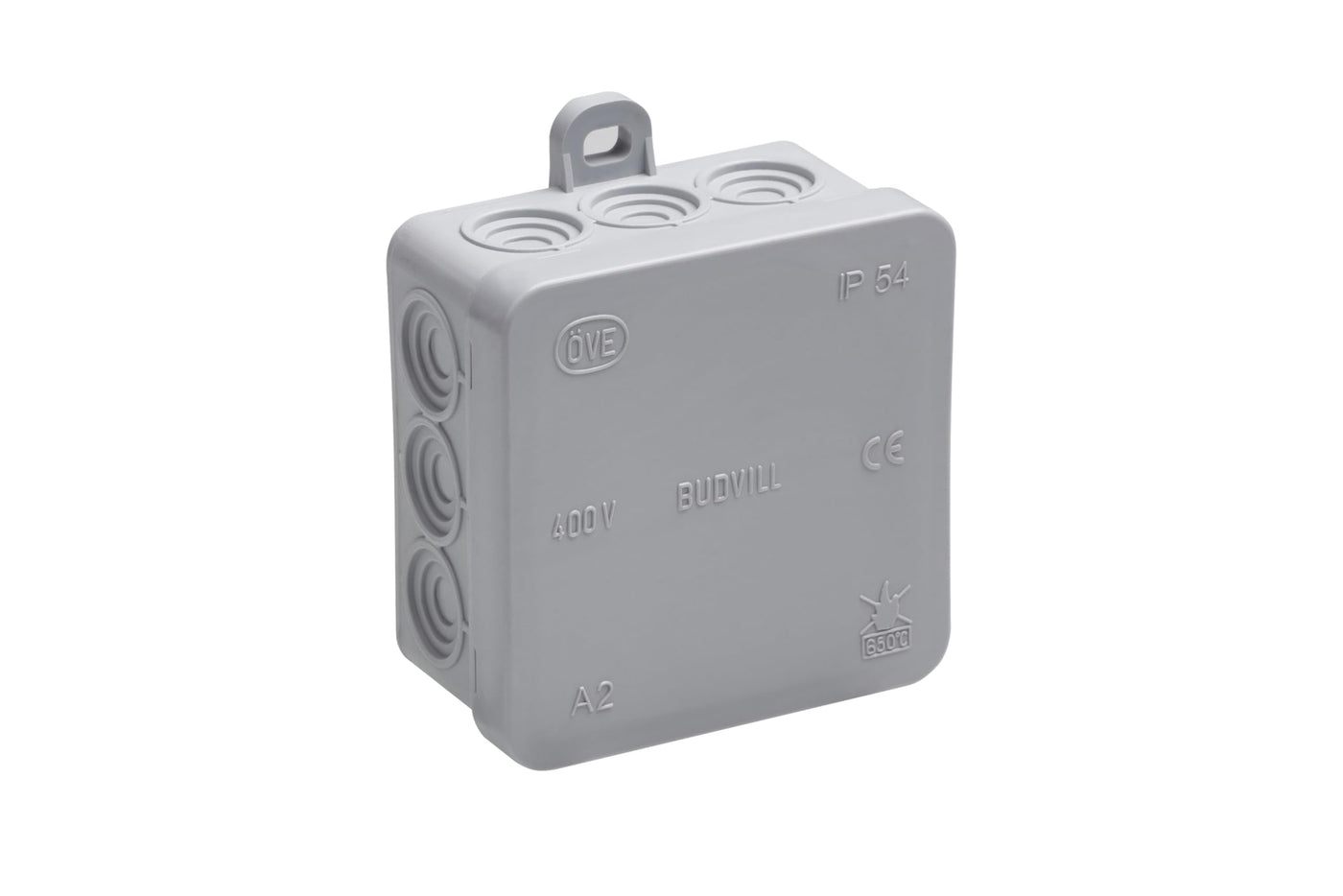 - Product details: installation: surface-mounted, dimensions: 75 x 75 x 37 mm, protection class: IP54, material: plastic, colour: grey, contents: 10 pieces
