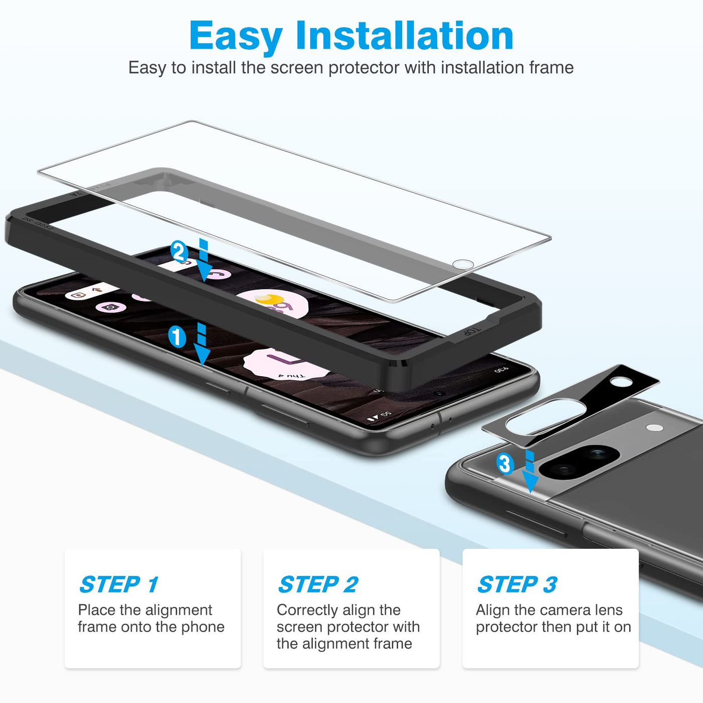 - Compatible Model: This screen protector and camera lens protector only compatible with Google Pixel 7A 6.1 inch (2023 released), NOT for any other phone models like Pixel 7 (6.3 Inch) /Pixel 7 Pro (6.7 Inch)