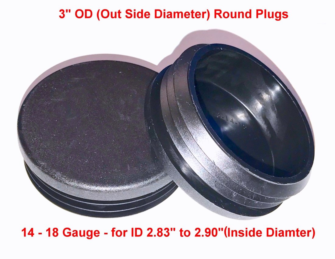 - (Pack of 4) 3" OD ROUND Plastic CAPLUGS (CCF-3 - 14-18 Ga) - Fits ID 2.83" to 2.90") | Thick, impact and abrasion resistant base w/ Flexible Ridges | 3 Inch Tube Bumper End Caps | Fence Post Slide Inserts