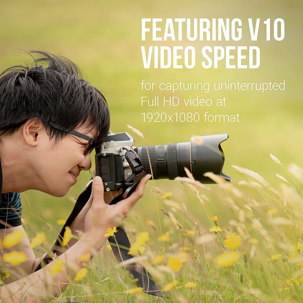 - V10 video speed rating to capture uninterrupted HD video at 1920x1080 format