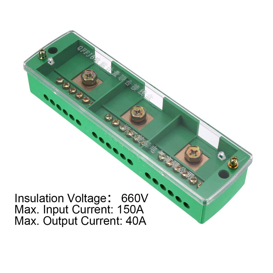 Description:-A Terminal Block is where the electrical supply is distributed from within the building.-The main distribution board is usually in the house where the main electrical cable enters and smaller boards, together with contact breakers and possibly earth leakage units are at other points, such as swimming pool pumps, gate motors and outbuildings.-It is finished in insulated PC plastic and has a tough clear plastic protective cover.-This distribution block helps to remove the need for several separate wires running from the main power -source and gives you a more clean and professional installation. Features:Type: 3 Ways In 18 Ways OutInsulation Voltage: 660VMax. Input Current: 150AMax. Output Current: 40AFit Input Cable Section: 4-35mm2Fit Output Cable Section: 1.5-10mm2Fits With 5/16" (8.2mm) Ring/Eye Wire Lugs (Not Included In The Package)Dimension:Size: 200 x 60 x 35mm / 7.87" x 2.36" x 1.38" (LWH) Mounting Hole Diameter: 5mm / 0.2"Mounting Hole Distance: 190mm / 7.48" Package Content: 1 x Distributor Block