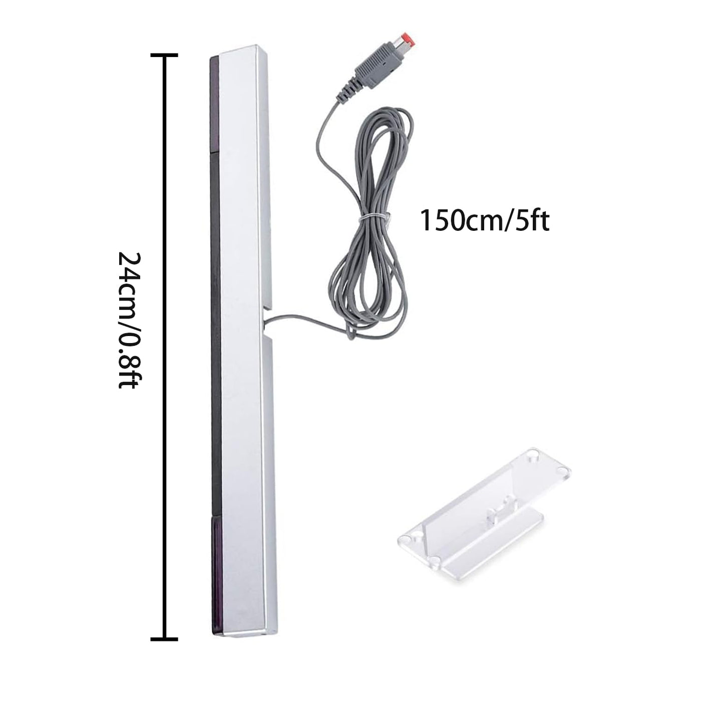 - Simple and PortableIncludes stand with adhesive for easy attachment to TV, monitor or any smooth surface. Wii system is not included. The Eanetf sensor bar's cable is more than 7ft long, ensuring convenient placement and flexibility. Sensor bar length: 9.4 inches.