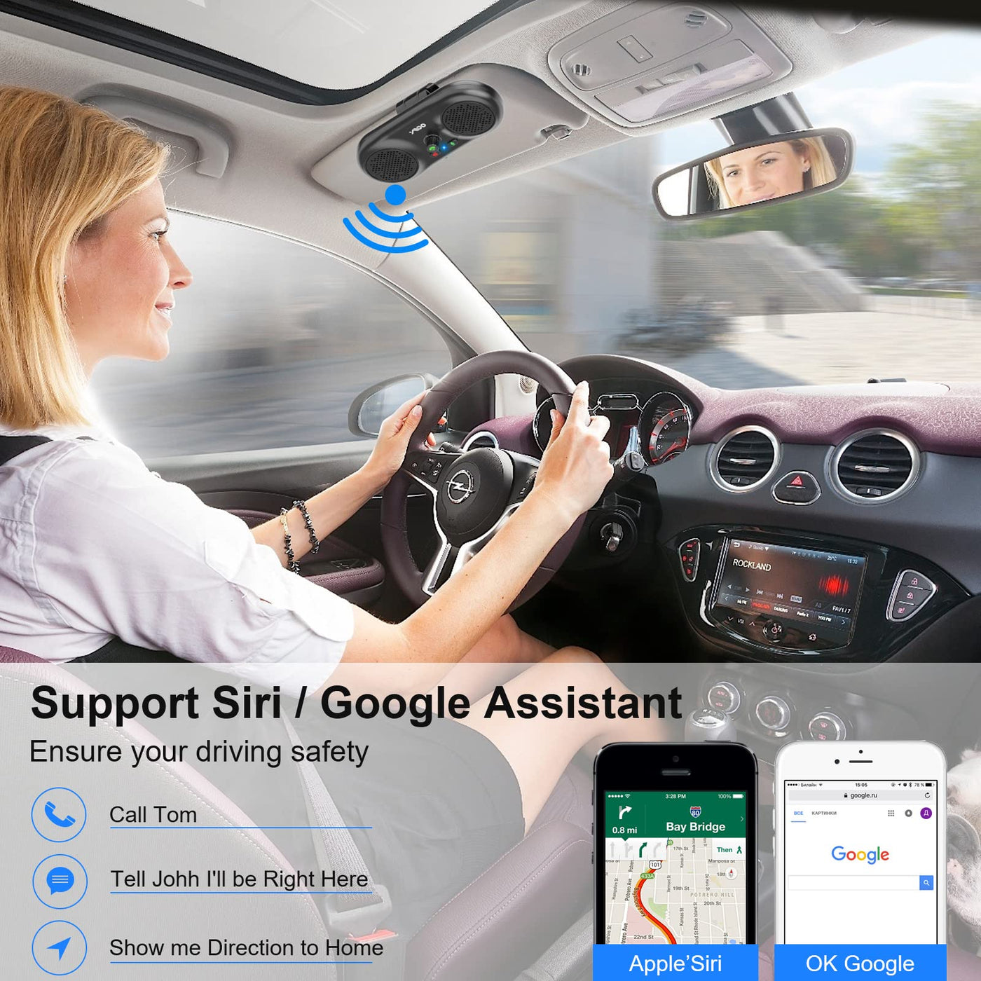 - SAFE DRIVING: This handsfree bluetooth car speaker supports Apple Siri connection and Google Assistant, you could make phone calls or get driving directions from GPS app, so you can stay fully focused on driving.